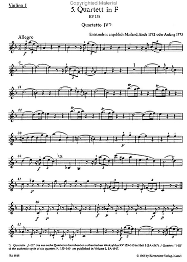 Mozart, W.A. (Fuessl): Thirteen Early String Quartets, Vol. 2 - No. 5-7, Barenreiter Urtext