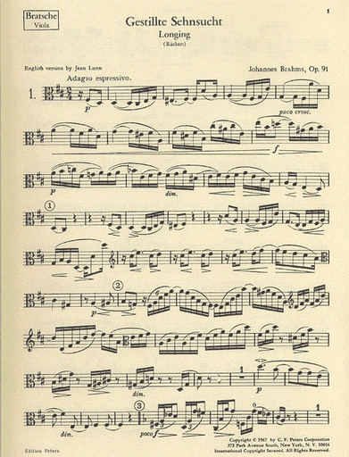 Brahms, Johannes: 2 Gesange Op.91 (alto voice, viola, piano)(alto voice, cello, piano)