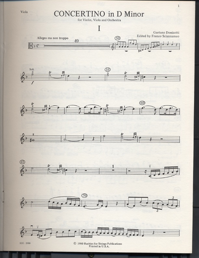 Donizetti, Gaetano (Sciannameo): Concertino in D minor for Violin & Viola with piano accompaniment