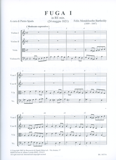 Mendelssohn, F.: 12 Fughe per Archi Bk.1 (string quartet score and parts)