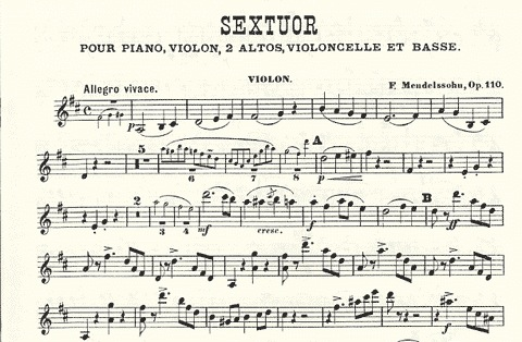 Mendelssohn, Felix: Sextet in D Op.110 (piano, violin, 2 violas, cello, bass) Peters ed