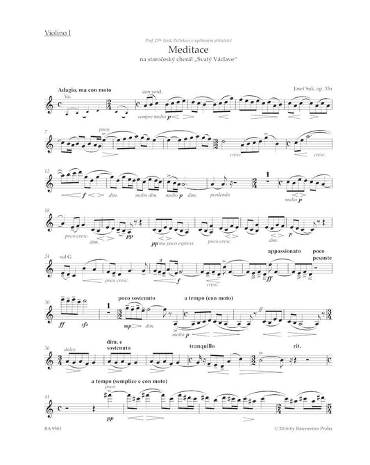 Suk: Meditation on the Old Czech Hymn "St. Wenceslas", Op.35a - URTEXT (string quartet) Barenreiter