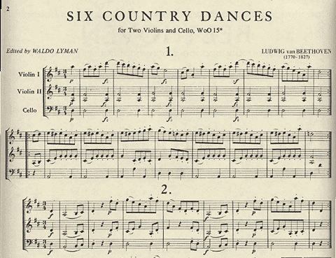 Beethoven, L.van: Six Country Dances WoO15 (2 Violins & Cello) score & parts IMC