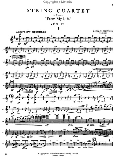 Smetana, Bedrich: String Quartet No. 1 in e minor -From My Life (set of parts)
