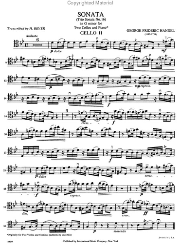 Handel, G.F.: Sonata in G minor Op.2 no. 8 (2 Cellos & Piano)