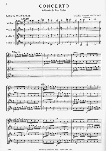 Telemann, G.P.: Concerto in D Major (4 violins) IMC