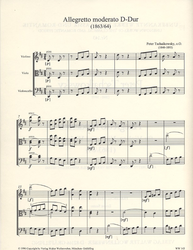 Tchaikovsky, P.I.: Allegro moderato-1864/5 (violin, viola, cello) score & parts