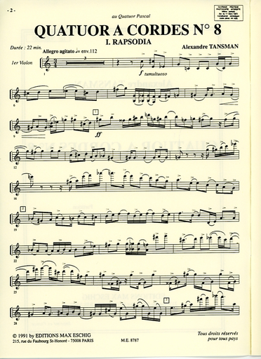 Tansman, Alexander: String Quartet No.8