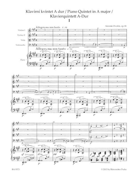 Dvorak, Antonin: Piano Quintet in A major, Op. 81 (piano, 2 violins, viola, cello) Barenreiter