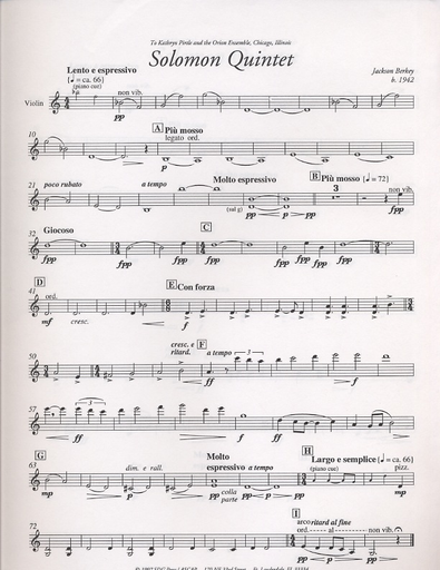 Berkey, Jackson: Solomon Quintet (clarinet, violin, viola, cello, piano)