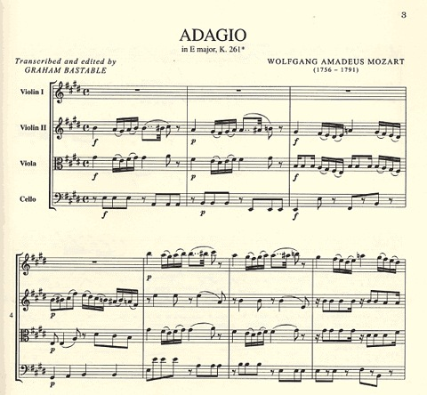Mozart, W.A.: Five Adagios for String Quartet-score and parts (2 violins, viola, cello)