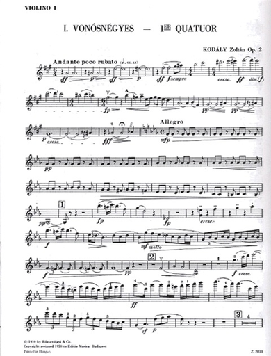 Kodaly, Zoltan: String Quartet Op.2 No.1 (parts)