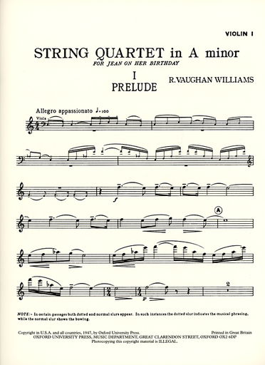Vaughan Williams: String Quartet in A minor (set of parts)
