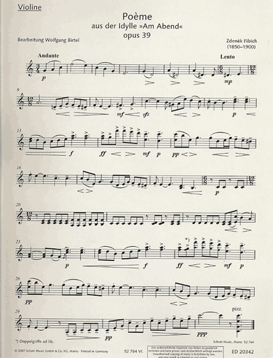 Fibich, F. (Birtel, arr.): Poem from the Idyll "At Twilight" (violin, viola, and cello)