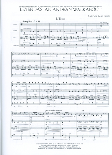 Frank, Gabriela Lena: Leyendas-An Andean Walkabout for String Quartet (score and parts)