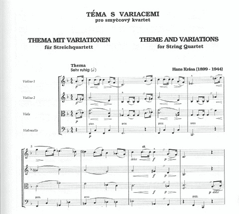 Krasa, Hans: Thema con Variazioni 1935-6 (string quartet) score and parts