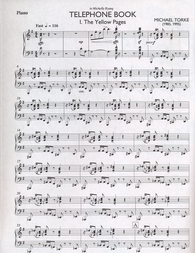 Torke, M.: Telephone Book (flute, clarinet, violin, cello, and piano)