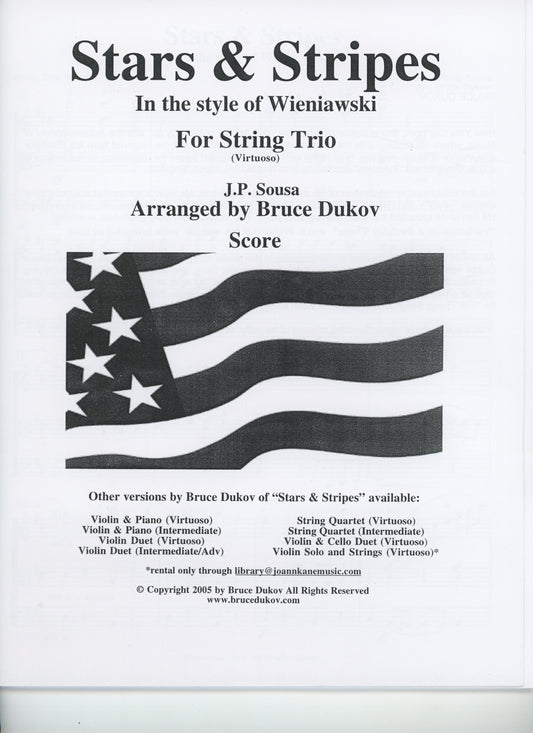Sousa, J.P. (Bruce Dukov): Stars & Stripes Trio, in the style of Wieniawski, Virtuoso level, parts & score, (violin, viola, cello)