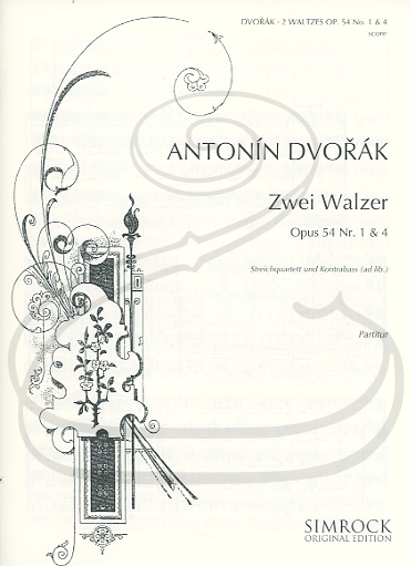 Dvorak: (score/parts) 2 Waltzes Nos.1 & 4, Op.54 (string quartet w/ bass (ad lib.)) Simrock