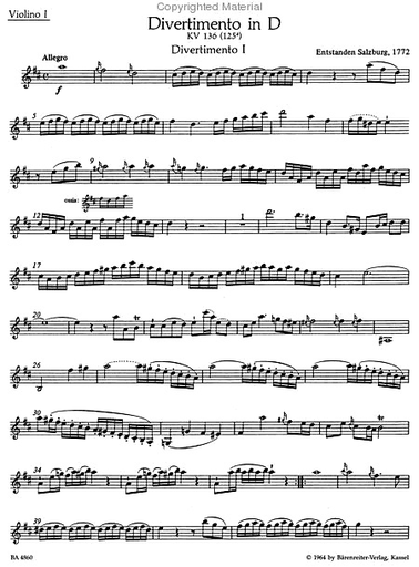 Mozart, W.A. (Fuessl): Three Divertimenti, KV136-138 - URTEXT (string quartet) Barenreiter