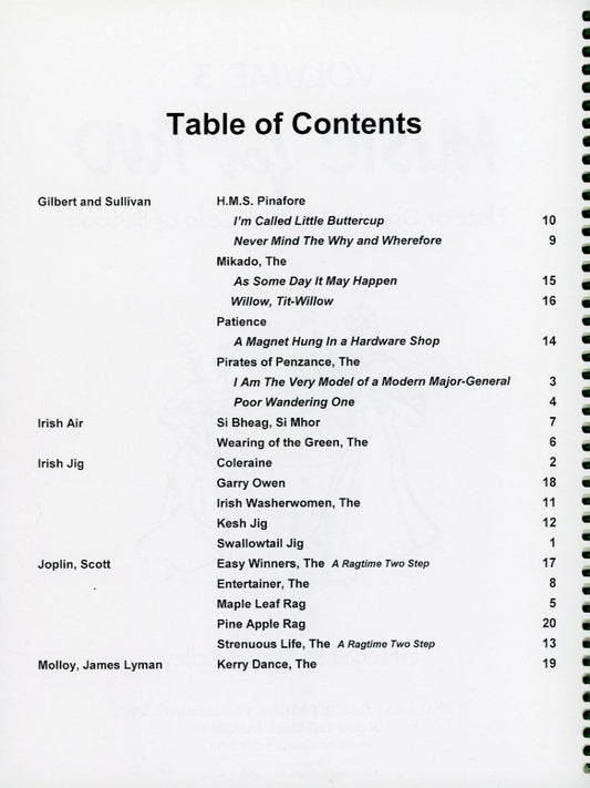 Kelley: Music for Two, Vol.3 - Gilbert & Sullivan, Irish Music, & Rags (violin & cello)