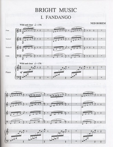 Rorem, N.: Bright Music, Quintet in Five Movements (flute, 2 violins, cello, piano, score & parts)