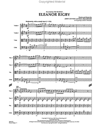 Lennon and McCartney: Eleanor Rigby-Pops for String Quartet (score and parts)