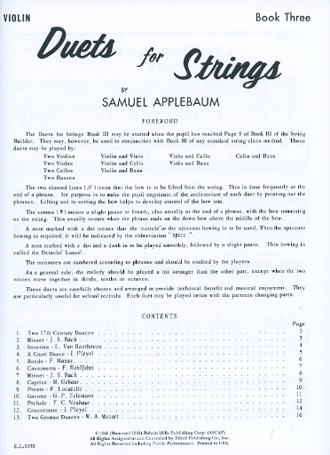 Applebaum, Samuel: Duets for Strings, Book Three (2 violins) Alfred
