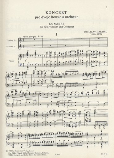 Martinu, Bohuslav: Concerto for Two Violins (2 violins & piano) Barenreiter