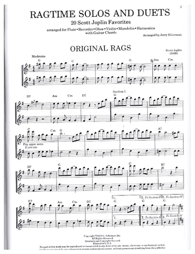 Joplin, S. (Silberman): 20 Favorite Solos & Duets with guitar chords (2 violins)