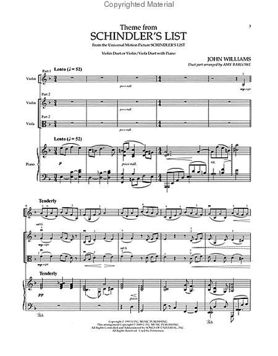 Williams (Barlowe): Theme from Schindler's List (2 violins/violin & viola, piano)