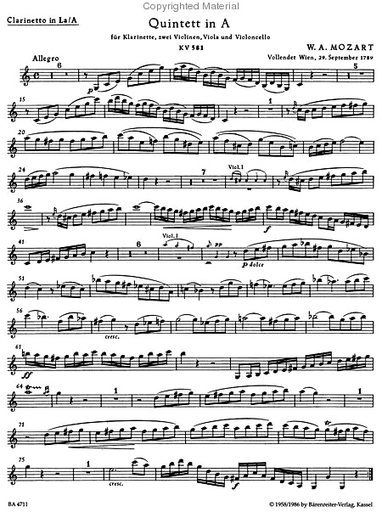 Mozart, W.A. (Schmid): Clarinet Quintet in A K.581 (clarinet, 2 violins, viola, cello) Barenreiter