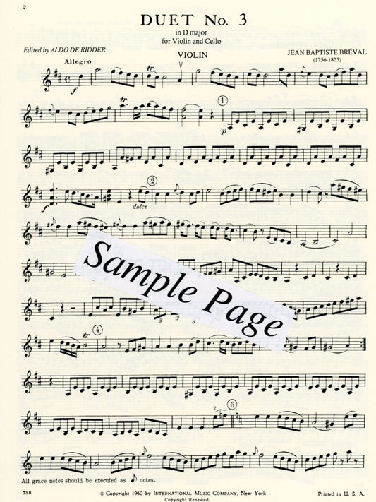 Breval, J.B.: Duet #3 in D Major (violin, cello) IMC