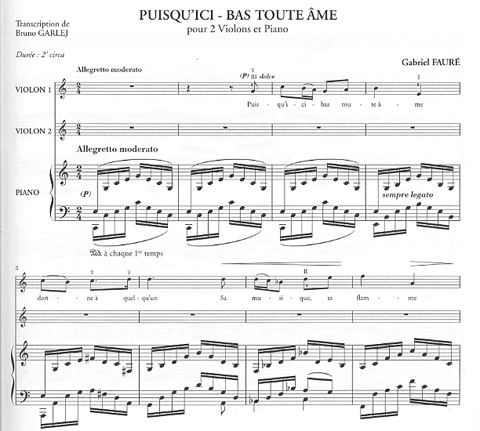 Faure, Gabriel (Garlej): Puisqu'ici-bas toute ame (2 violins & piano)
