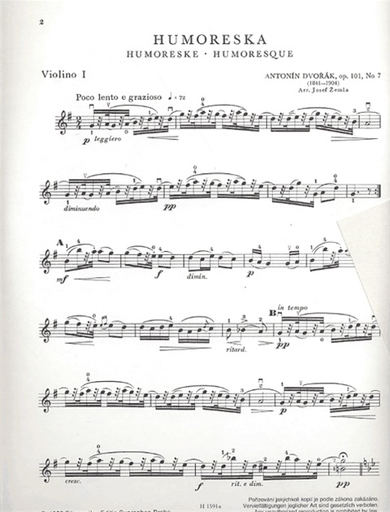 Dvorak, Antonin: Humoresque in G flat Op.101 No. 7 (2 violins) Barenreiter
