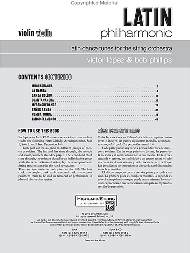 Lopez, V. and Phillips, B.: Latin Philharmonic-latin dance tunes for the stringt orchestra (teacher's score & CD accompaniment)
