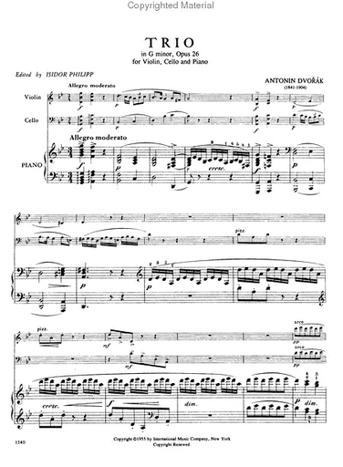 Dvorak, Antonin: Trio in G mi Op.26 (violin, cello, piano)