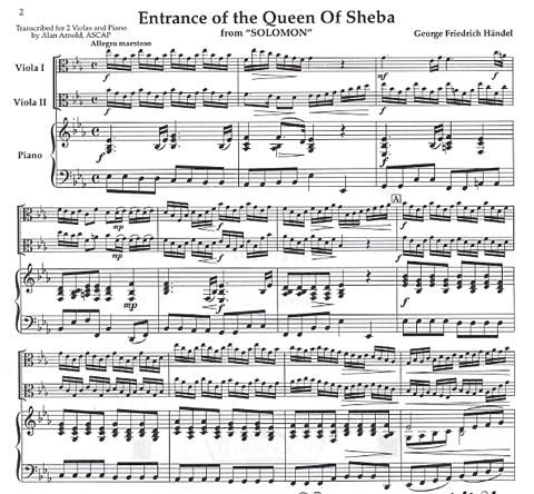 Handel, G.F. (Arnold) Entrance of the Queen of Sheba (2 violas, piano)