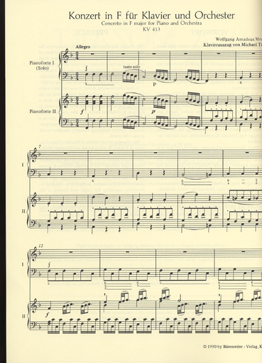 Mozart, W.A.: Piano Quintet/Concerto in F KV413 (piano, 2 violins, viola, cello) Barenreiter