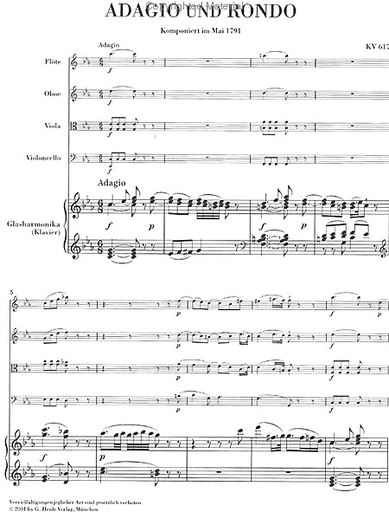 Mozart, W.A. (Wiese, ed.): Adagio and Rondo, KV 617, urtext (glass harmonica [piano], flute, oboe, viola, and cello)
