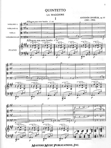 Dvorak, Antonin: Quintet in A major, Op. 81 (2 violins, viola, cello, piano)