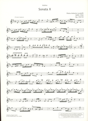 Locatelli, Pietro Antonio: Trio Sonata Op. 8 No. 10 for violin, Cello & Basso Continuo (violin, 2 cellos, piano)