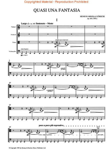 Gorecki, H.: String Quartet No. 2 Quasi una Fantasia (study score)