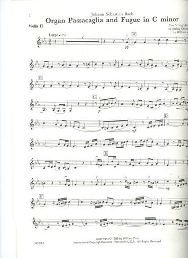 Bach, J.S. (Zinn): Passaglia and Fugue in c minor transcribed for string quartet