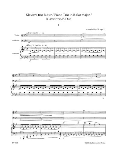 Dvorak, Antonin (Cubr): Piano Trio in Bb op.21 (violin, cello, piano) Barenreiter