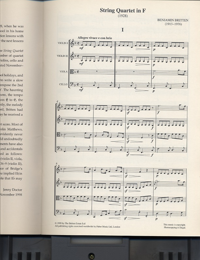 Britten, B.: (Score) String Quartet in F (1928) (string quartet)