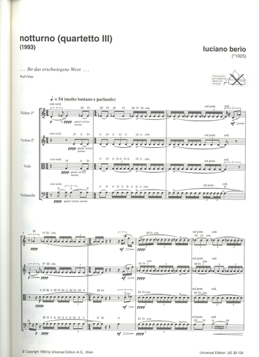 Berio, L.: (Score) Sincronie for String Quartet (string quartet)