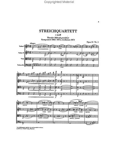 Brahms, J. (Reiser, ed.): String Quartet, Op. 51 No. 1 in C Minor and 2 in A Minor, urtext (score)