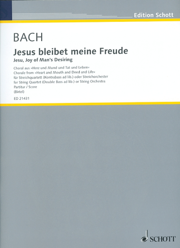Bach, J.S. (Birtel): (Score) Jesu, Joy of Man's Desiring - Chorale from ''Heart and Mouth and Deed and Life'' for String Quartet (Double Bass ad libitum) or String Orchestra (string orchestra)