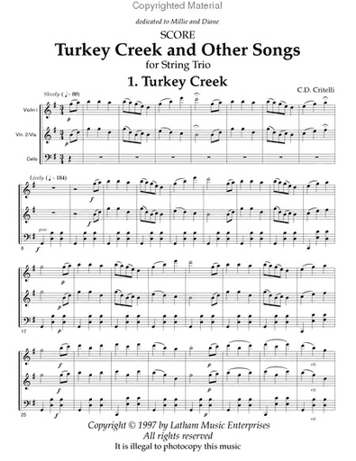 Critelli, Carol: Turkey Creek & Other Songs for String Trio (score)